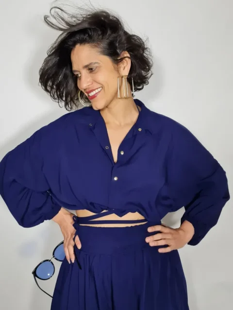 A versão curta do Camisão Cris, a peça mais democrática da camisaria pois é agenero e tamanho único que veste até o G5-66. Além disso tem um cintinho interno para acinturar e usar de várias formas.