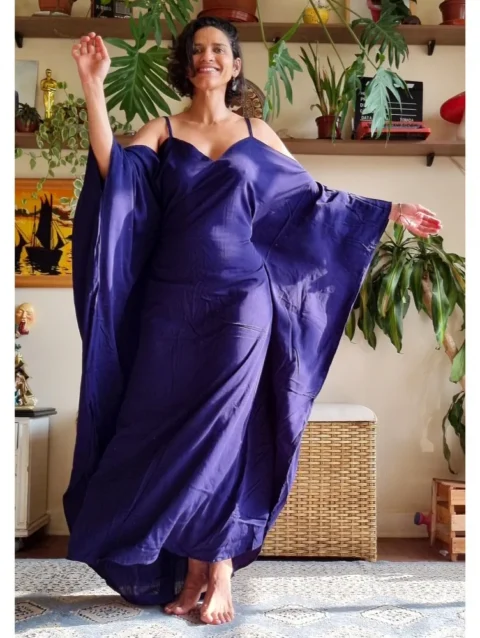 Kaftan longo com alcinhas, pode ser usado sem as mangas longas também. Vem com cintinho interno para acinturar se deseja.