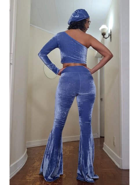 CALÇA JANIS JOPLIN VELUDO AZUL CLARO – boca de sino
