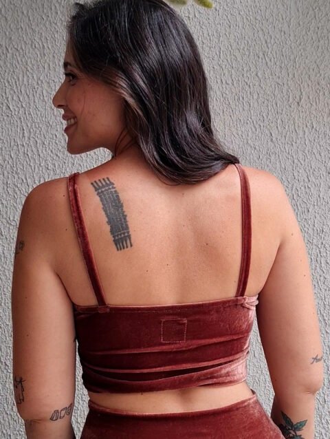 Um body com um decotão nas costas que vale ouro! Demos esse nome em homenagem a nossa campeã olímpica Rebeca Andrade.