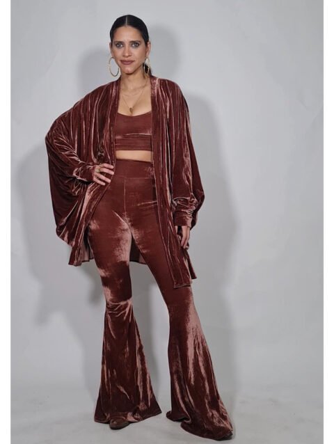 Calça boca de sino em veludo com elastano que vai te transportar diretamente pros anos 70 ✌🏾