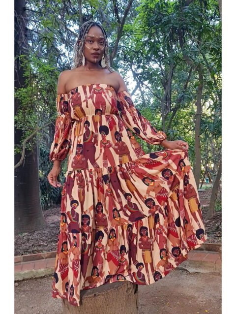 Vestido para botar a cigana para girar, com camadas de saias franzidas, alças versáteis e mangas removíveis.