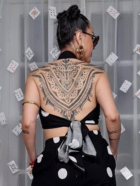 Top-corset totalmente ajustável pela amarração nas costas, além de charmoso!
