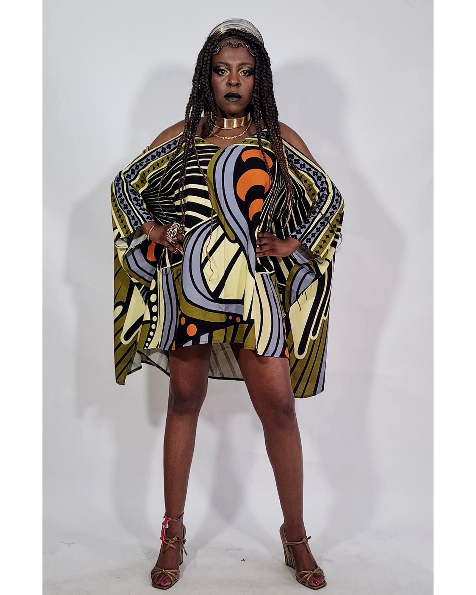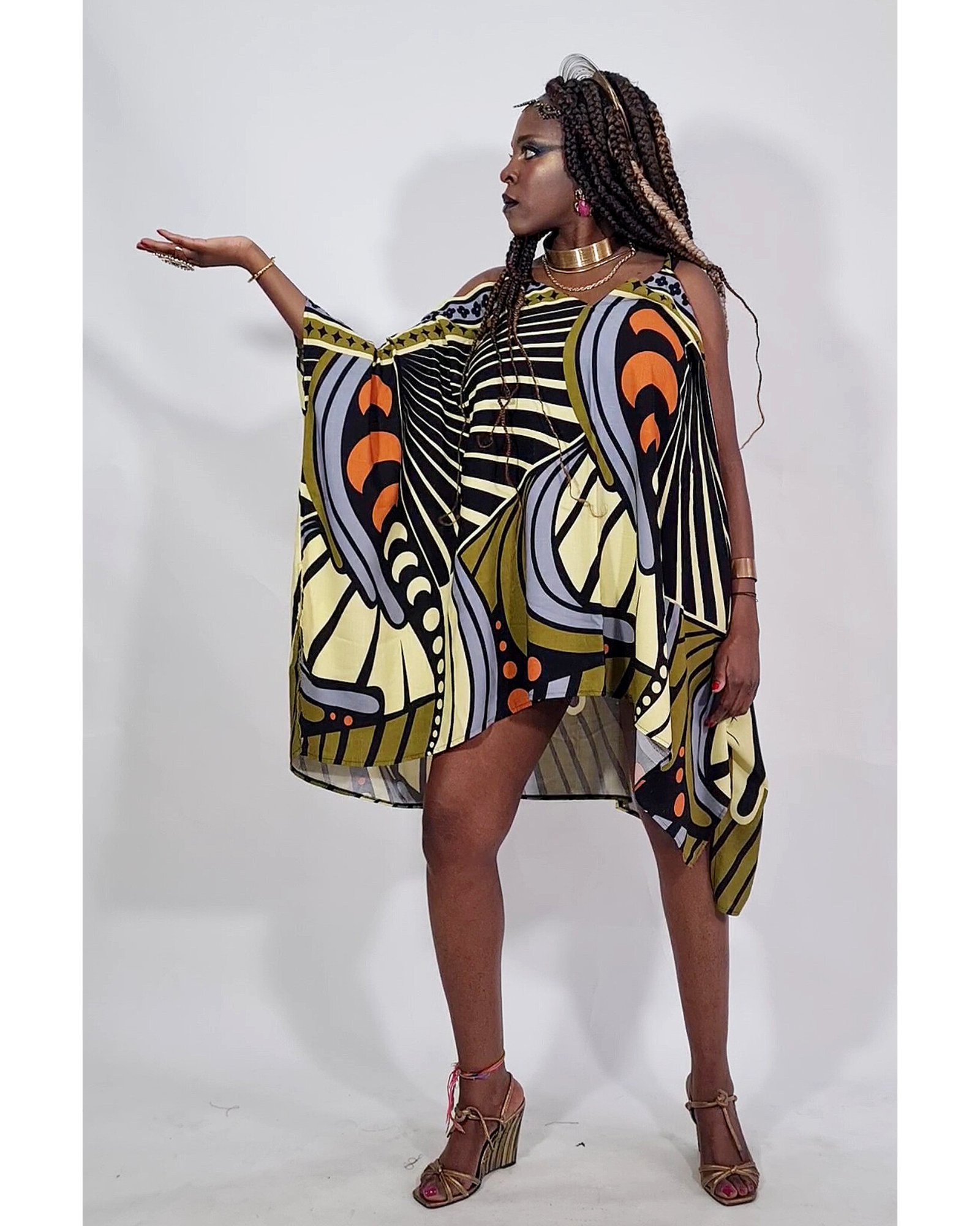 Bata curta bem ampla com alcinhas reguláveis. Versátil, pode ser usado somente 1 manga ou sem as mangas, como vestido. Vem com cintinho interno para acinturar se desejar.