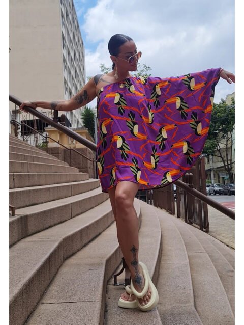Versátil, pode ser usado com as duas mangas, um-ombro-só, sem as mangas como vestido, além das várias formas de amarrações que seus cintinhos internos proporcionam.