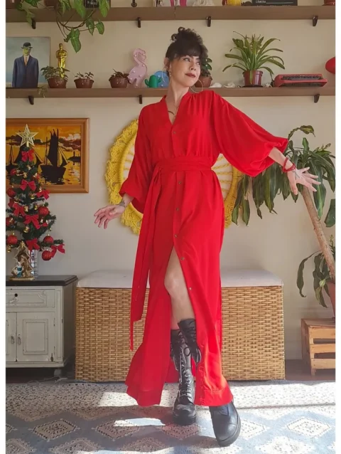 Bata com alcinhas, tamanho único, super ampla, pode ser usada ajustada ou soltinha, sem as mangas longas também. Vem com cintinho interno para acinturar se desejar.