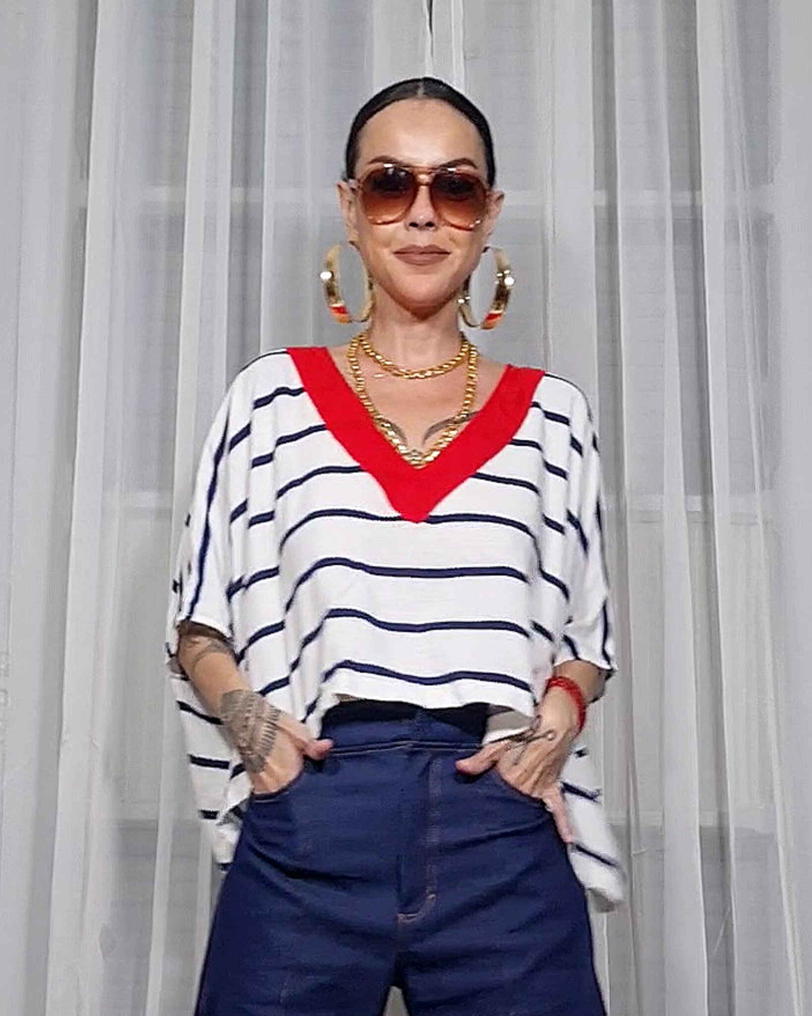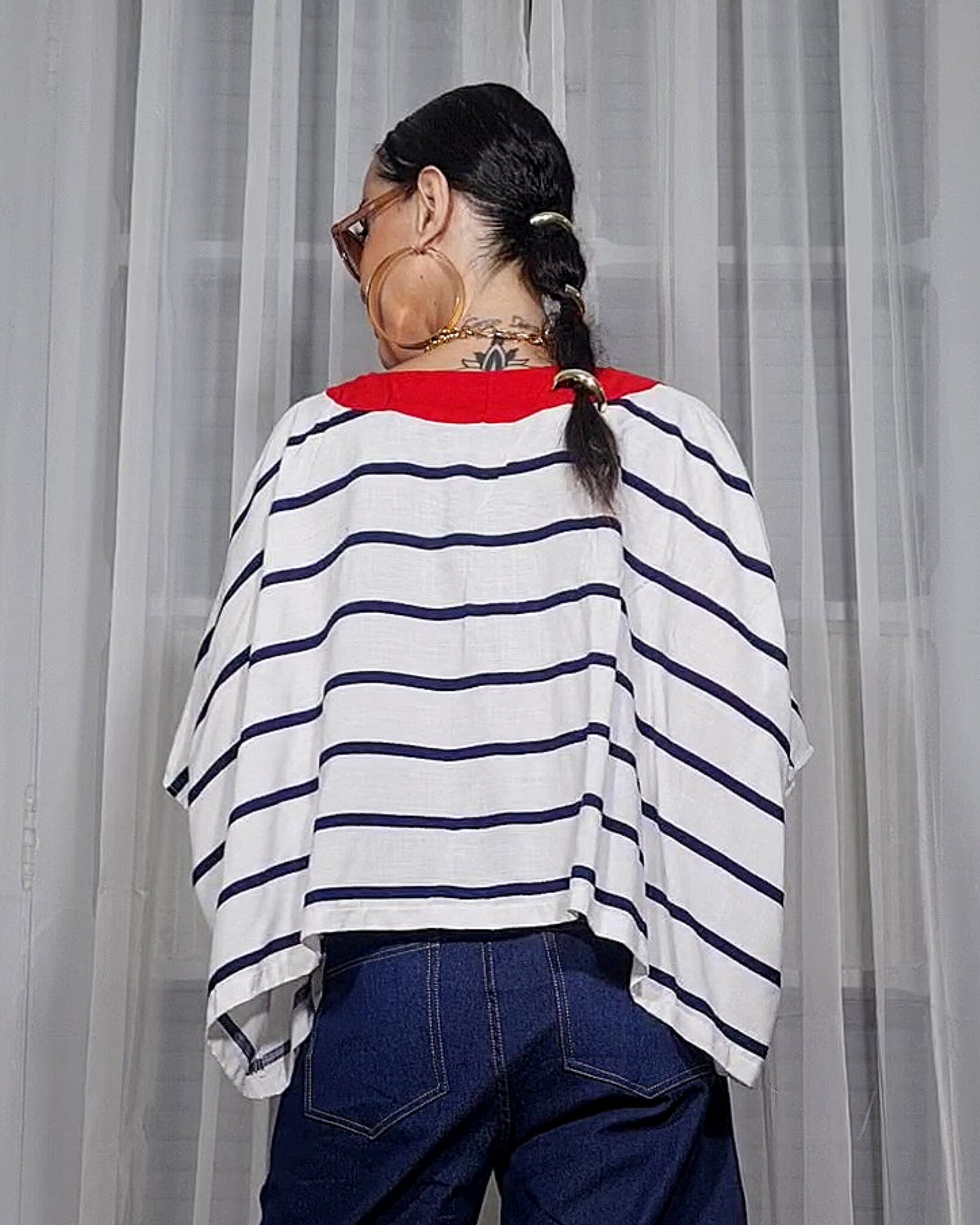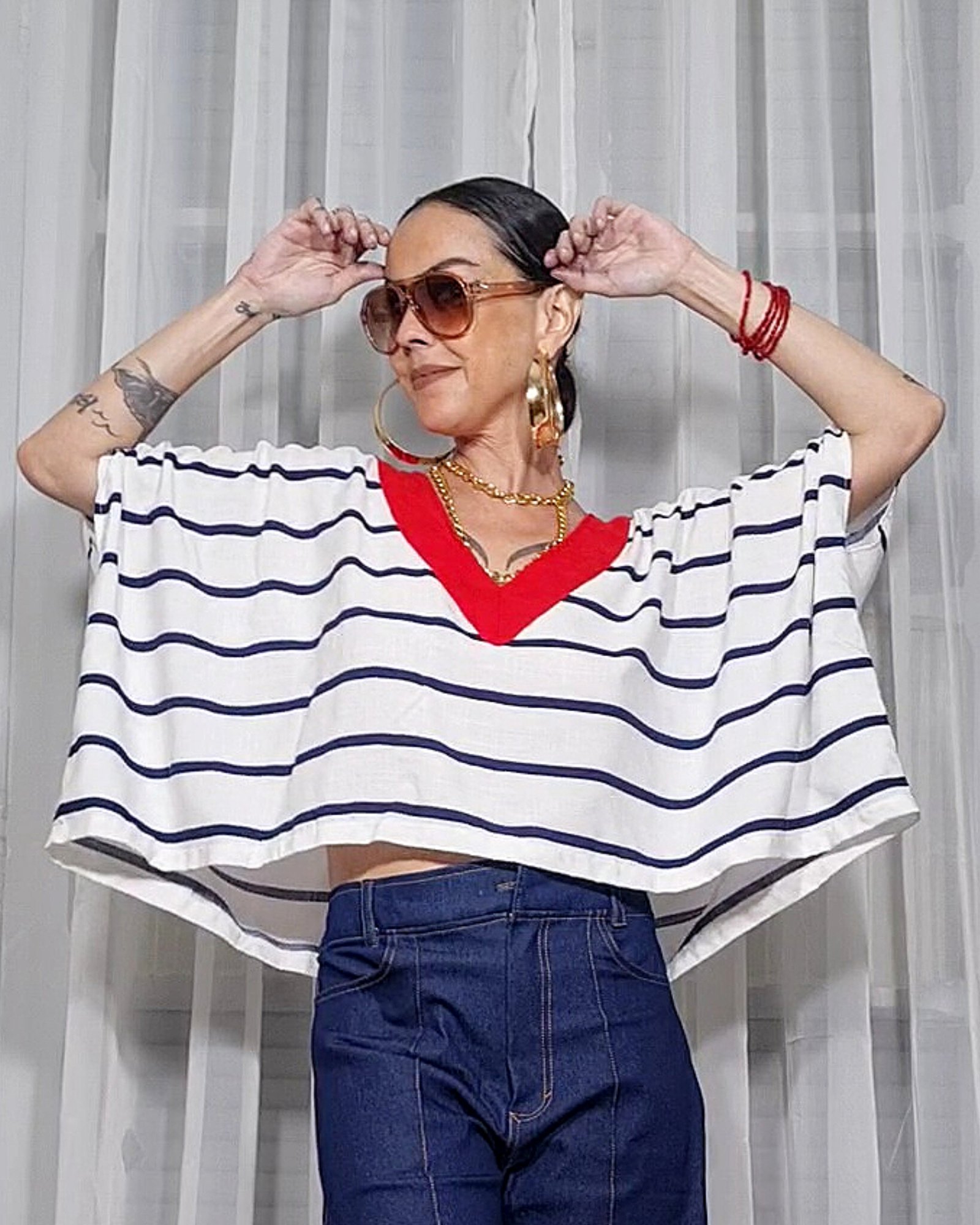 Blusa retangular bem ampla.