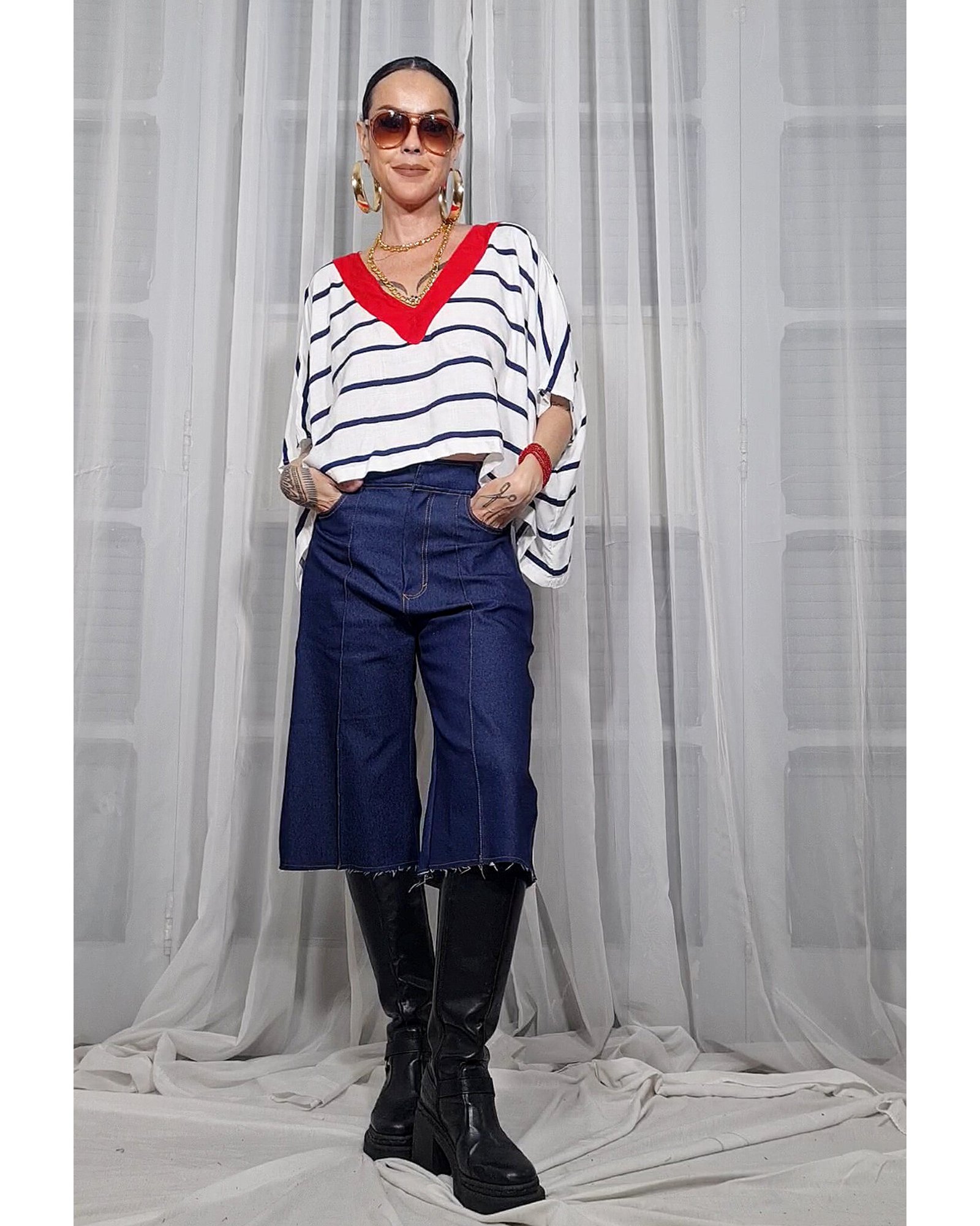 BLUSA BETH LISTRADA ALTO MAR
