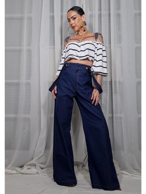 BLUSA SAIA BALONÊ LISTRADA ALTO MAR
