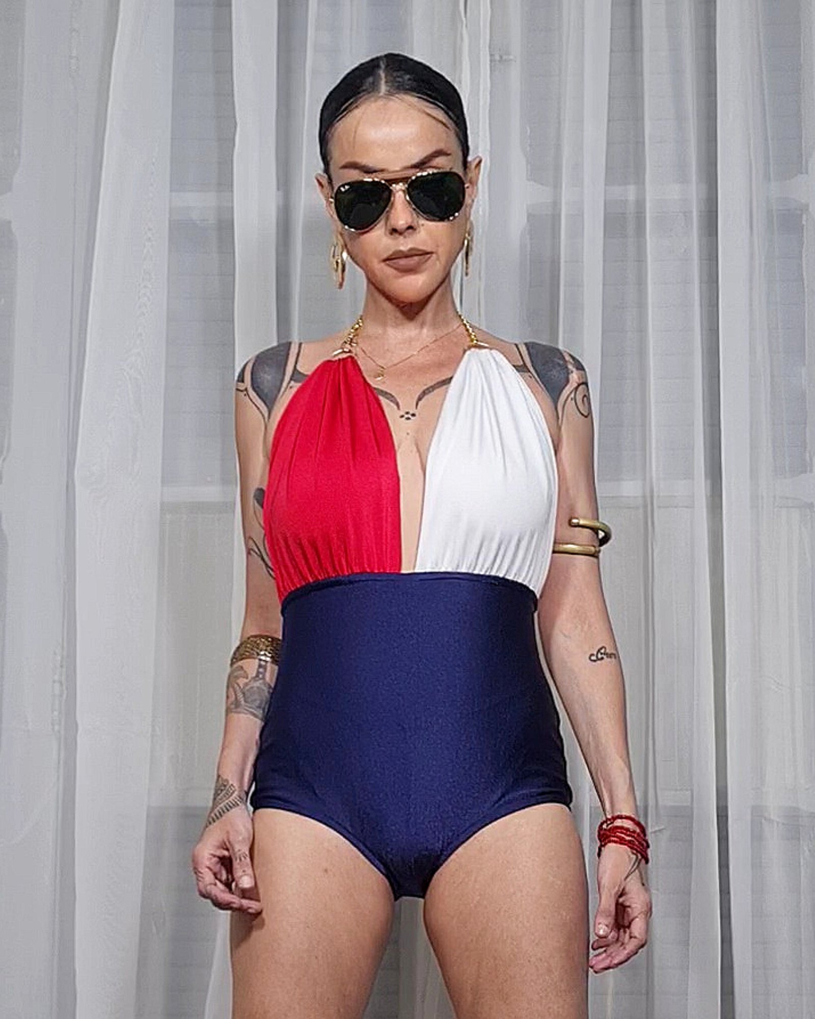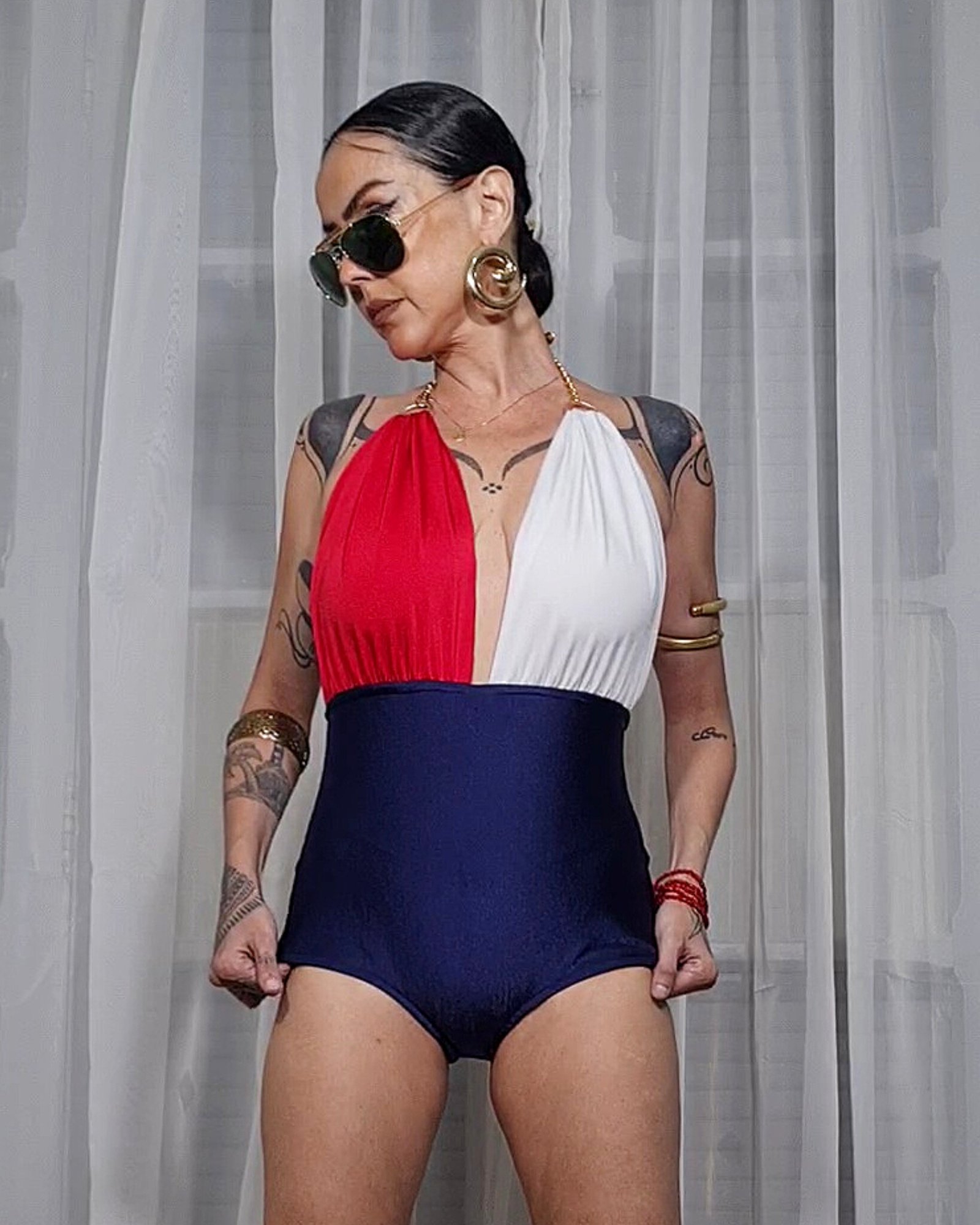 BODY GISELE 3 CORES: MARINHO, VERMELHO E OFF WHITE