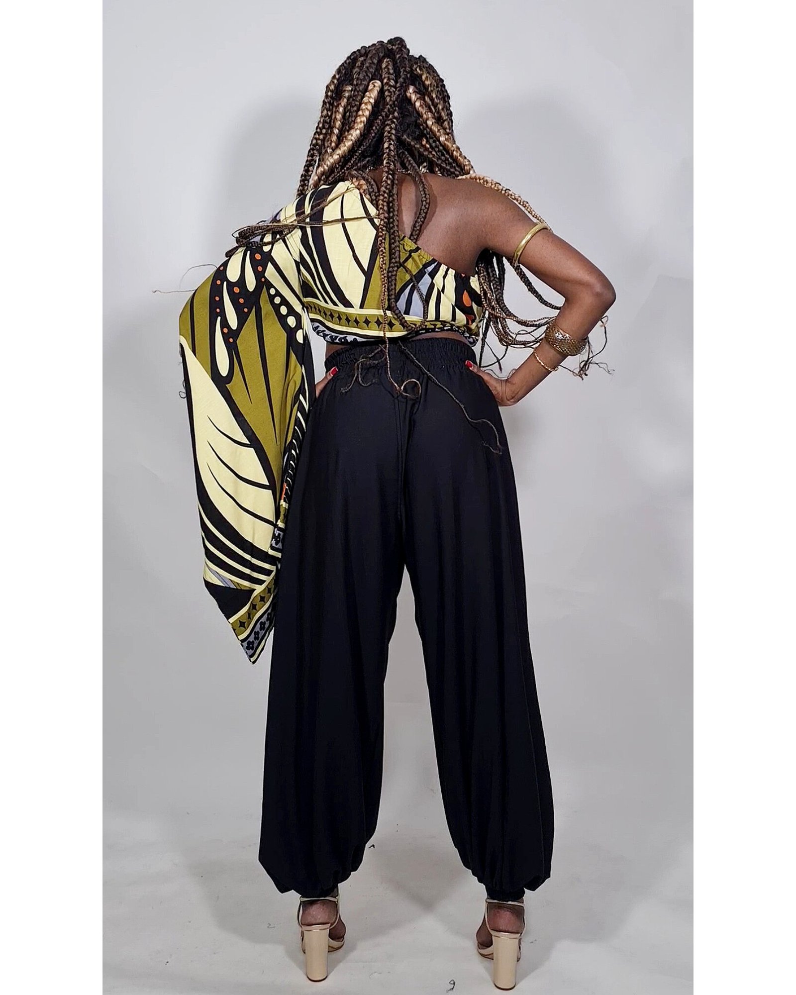 Possui elástico de 8cm de largura super maleável e confortável, que deixa a peça bem adaptada a cintura sem apertar, bolsos nas laterais, e elástico nas barras.