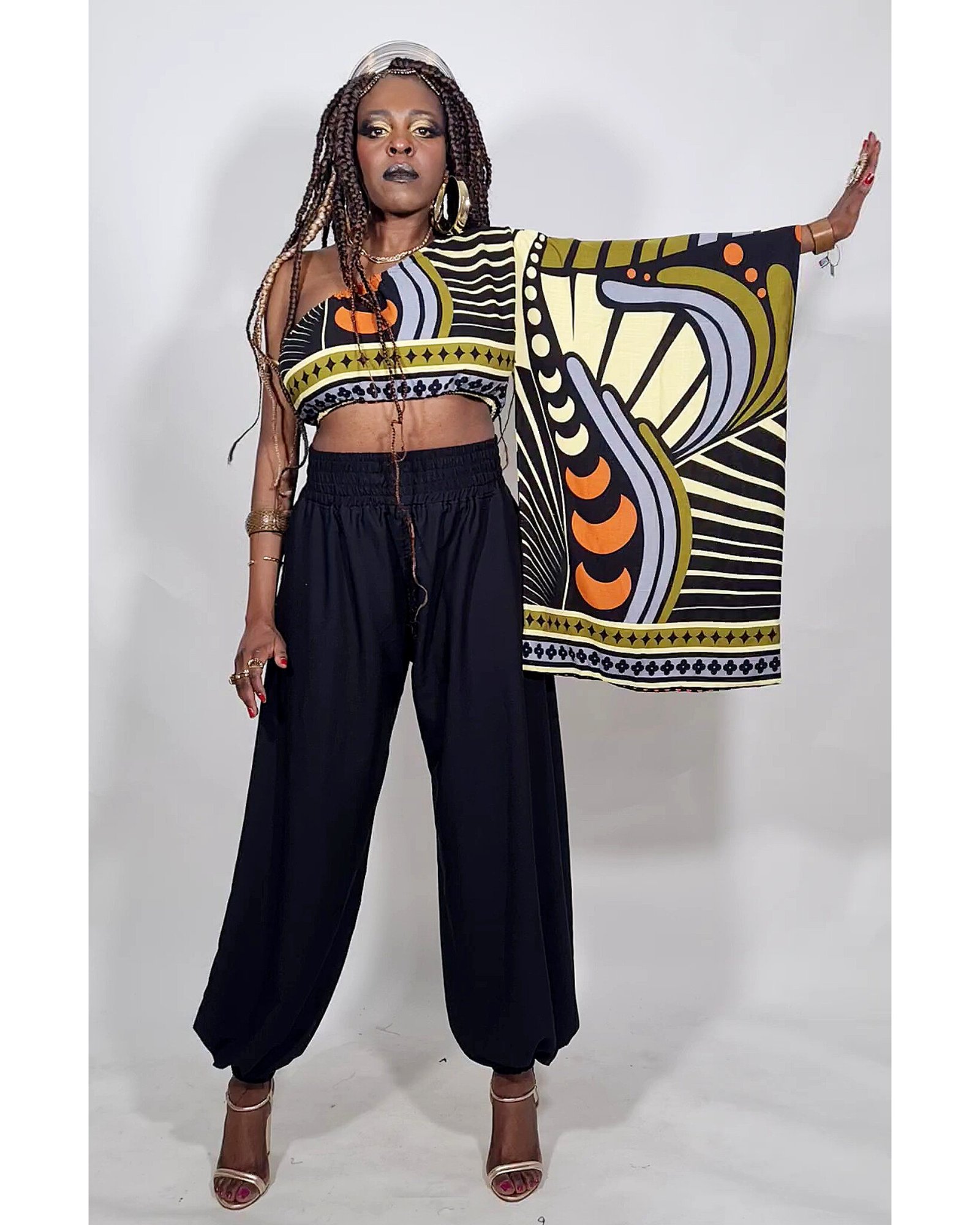 Tamanho 2 veste 42/44/46: Cintura estica de 82cm a 91cm, 1.58m quadril