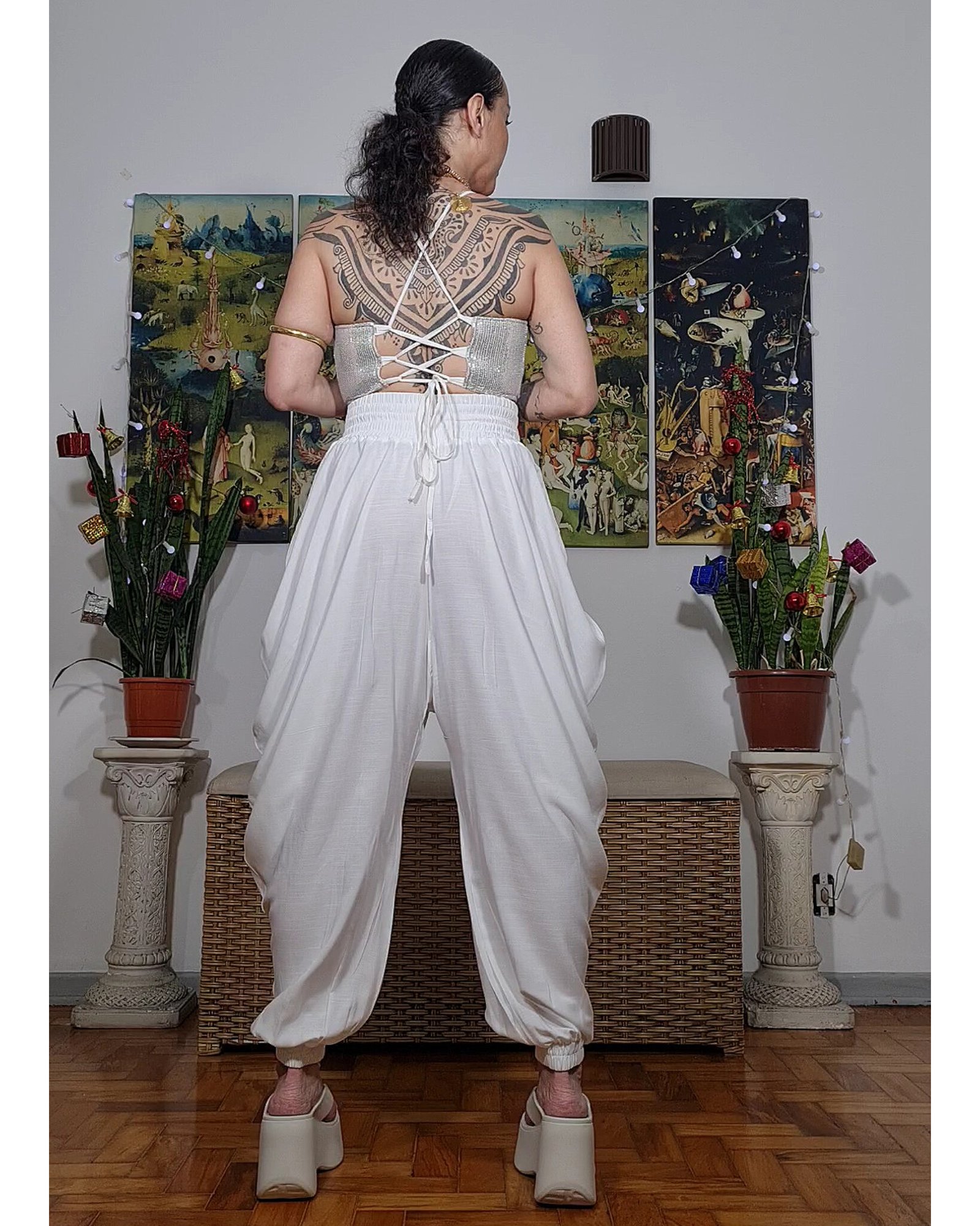 Como o quadril é bem amplo devido ao franzido, a única medida que importa para você escolher seu tamanho é a CINTURA.