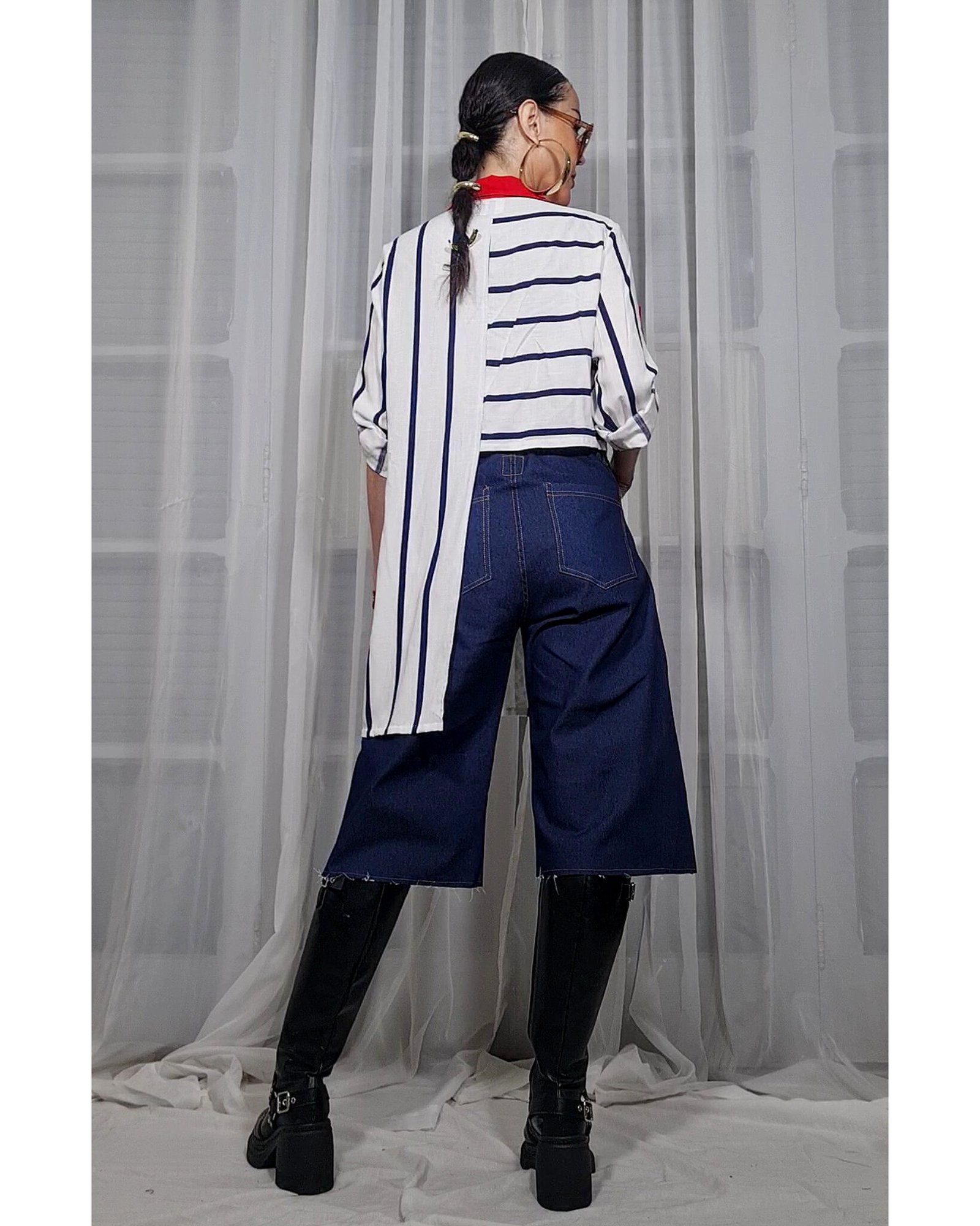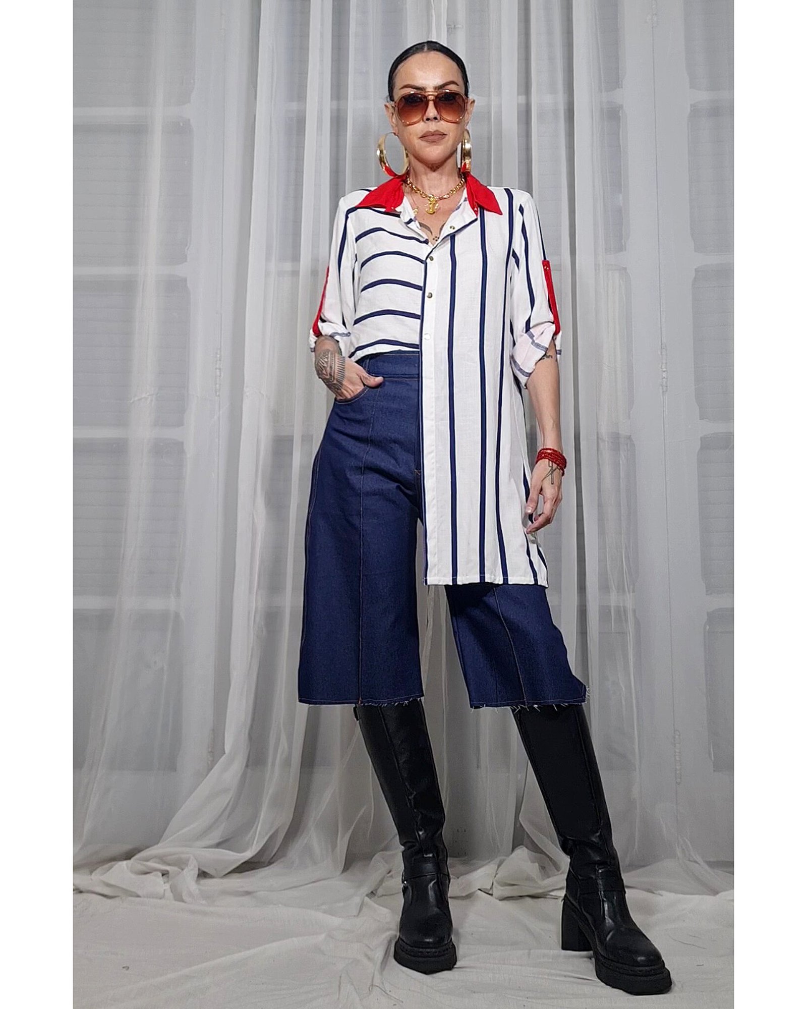 Depois que você finalizar a sua compra, você pode nos enviar a sua altura e o seu nome completo pelo WhatsApp para mandarmos a sua peça com a barra feita, que tal? Ideal para calças e peças longas.