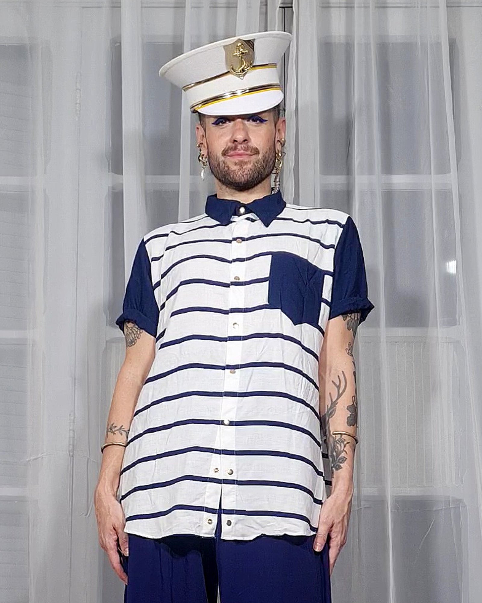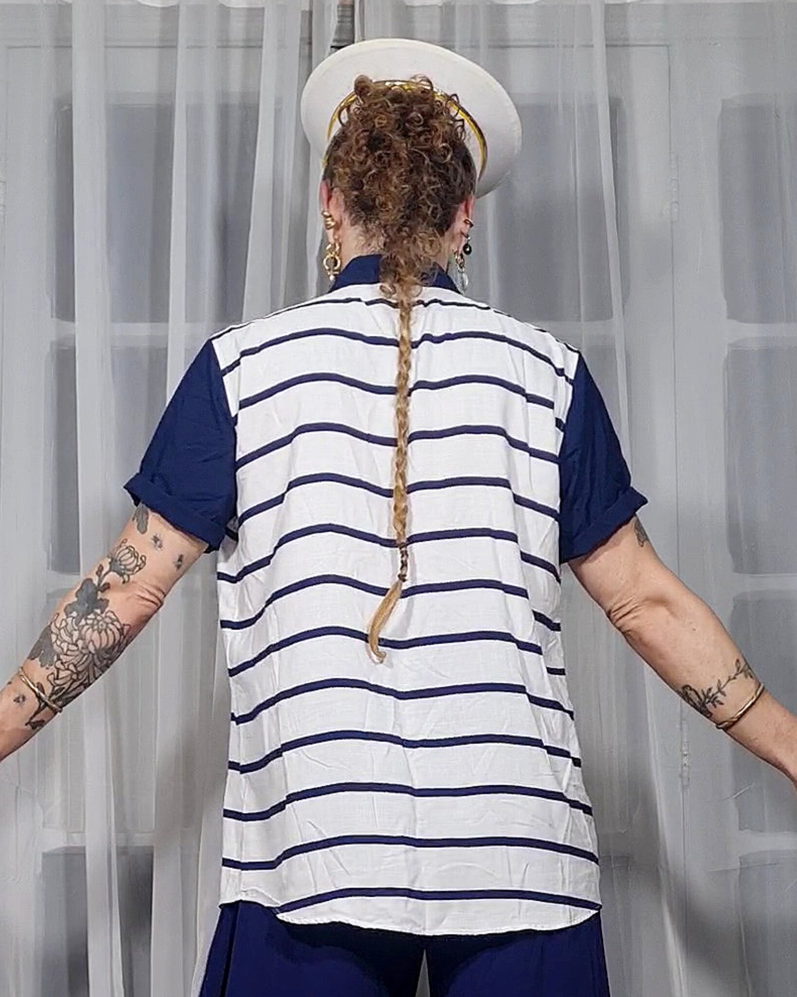 CAMISA MARIA JOÃO MANGA CURTA DETALHES MARINHO ALTO MAR
