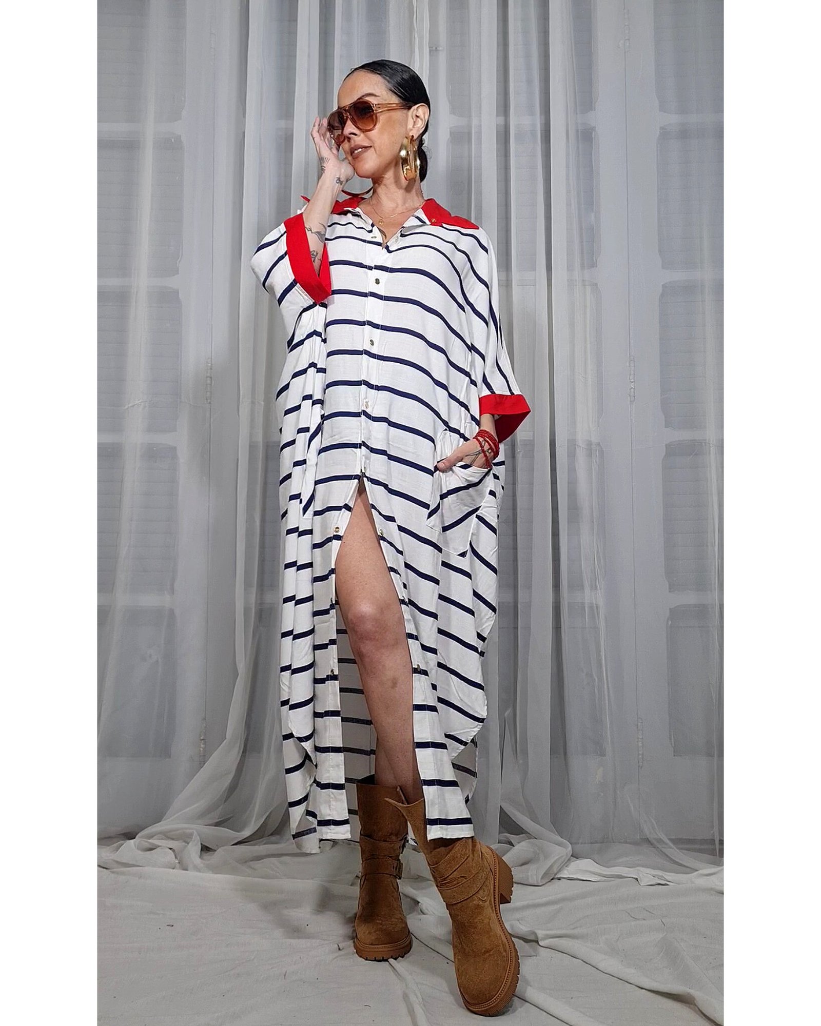 Peça tamanho único, com modelagem que mistura camisaria e kaftan, sem gênero, maravilhosona!!!