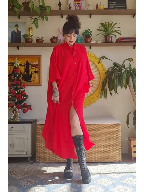 Camisa ampla, tamanho único, tem 2 metros de circunferência e 130cm de comprimento, vai vestir TODOS OS CORPOS. Possui bolsos e cintinho interno para acinturar.