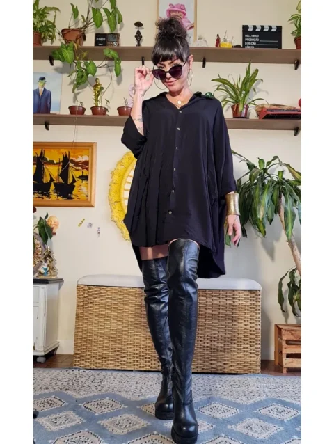 O camisão Cris é A peça-chave do seu guarda roupas, pois além de ser super confortável é versátil, agenero e tamanho único. Veste todos os corpos!!! Tem 2m de circunferência e 1.30m de comprimento. Veste do P ao G5.