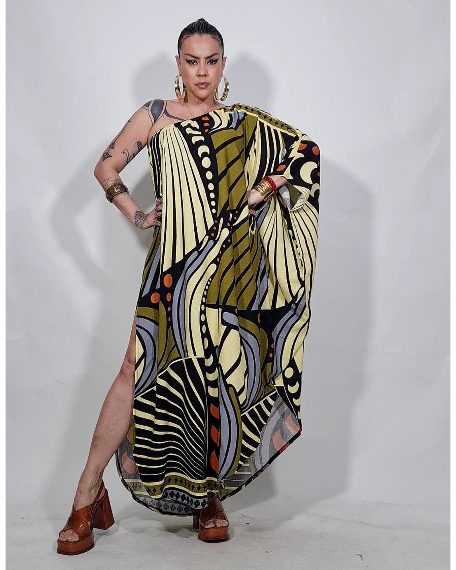 Kaftan um-ombro-só, super amplo, confortável e lindo!