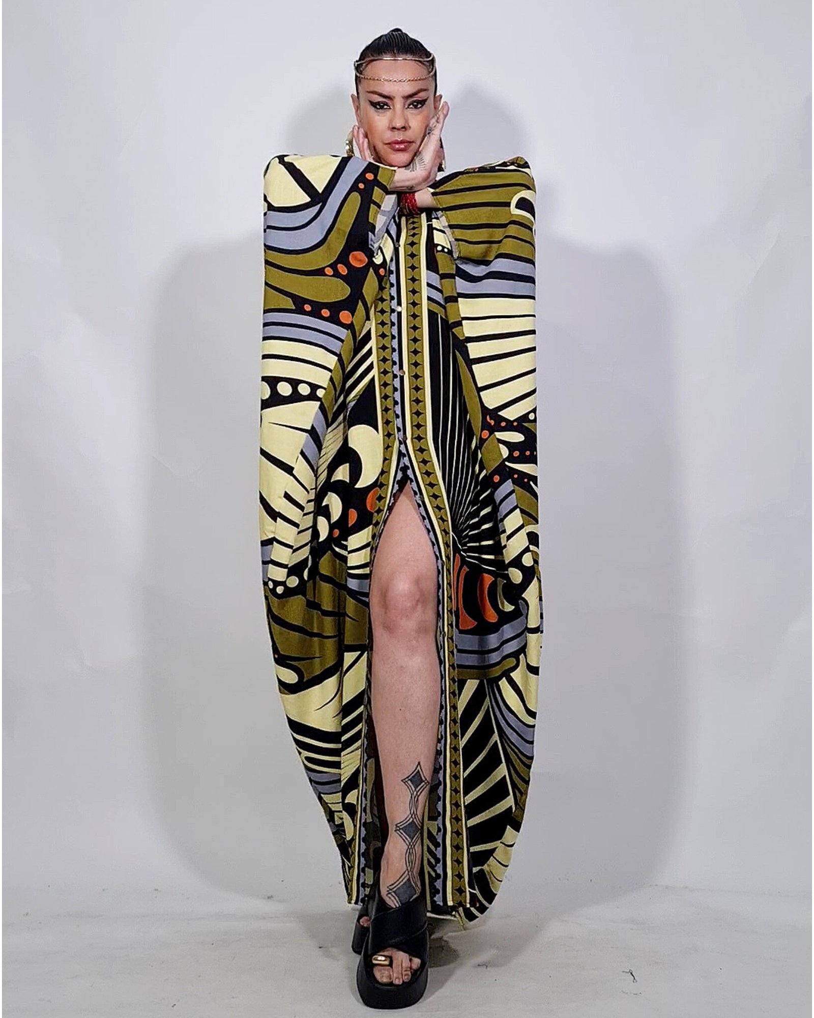 Kaftan amplo com abotoamento de camisa, sem gênero