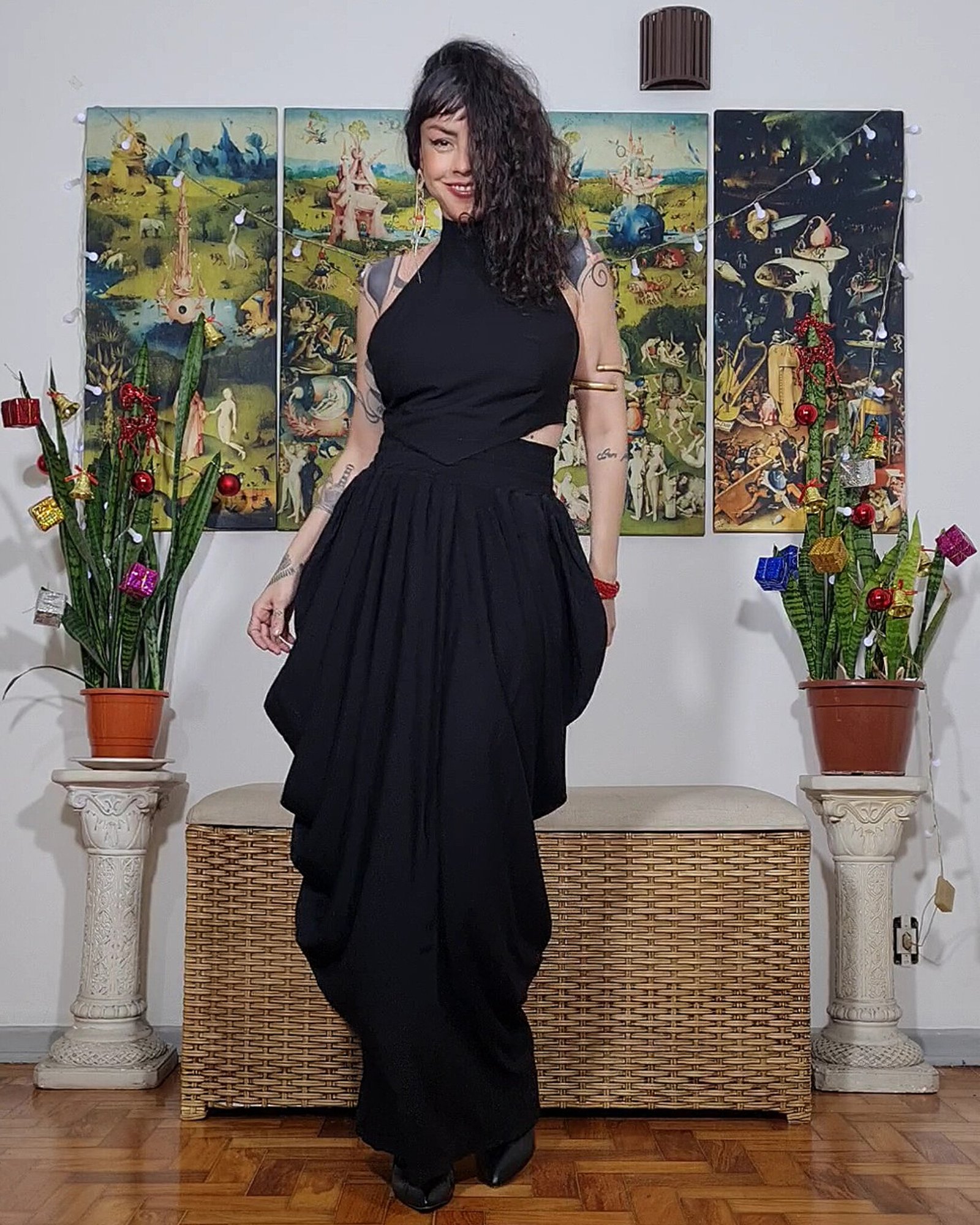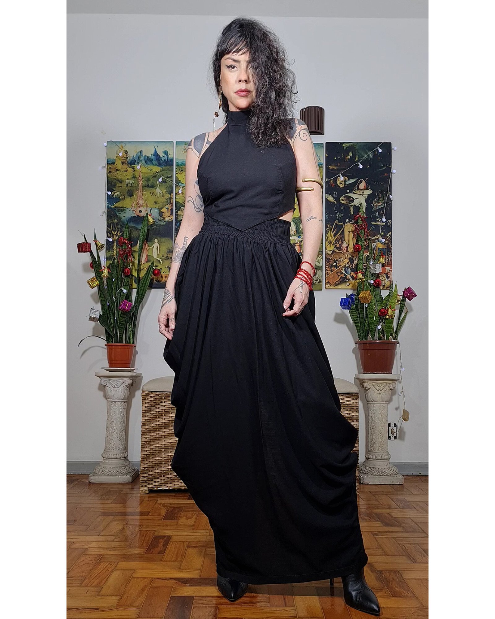 Uma saia espetacular que franze em cascata nas laterais, diferente de todas as saias que você já viu, um espetáculo!