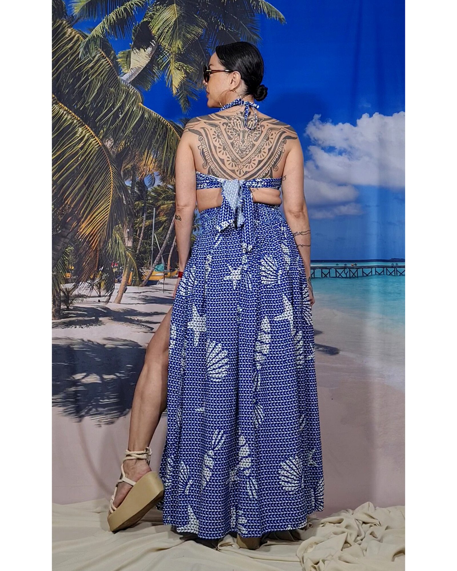 Saia Jasmim é super versátil, tem botões para vc regular o tamanho da fenda, elástico na cintura confortável e pode também ser usada como vestido tomara-que-caia, soltinho ou com cinto.