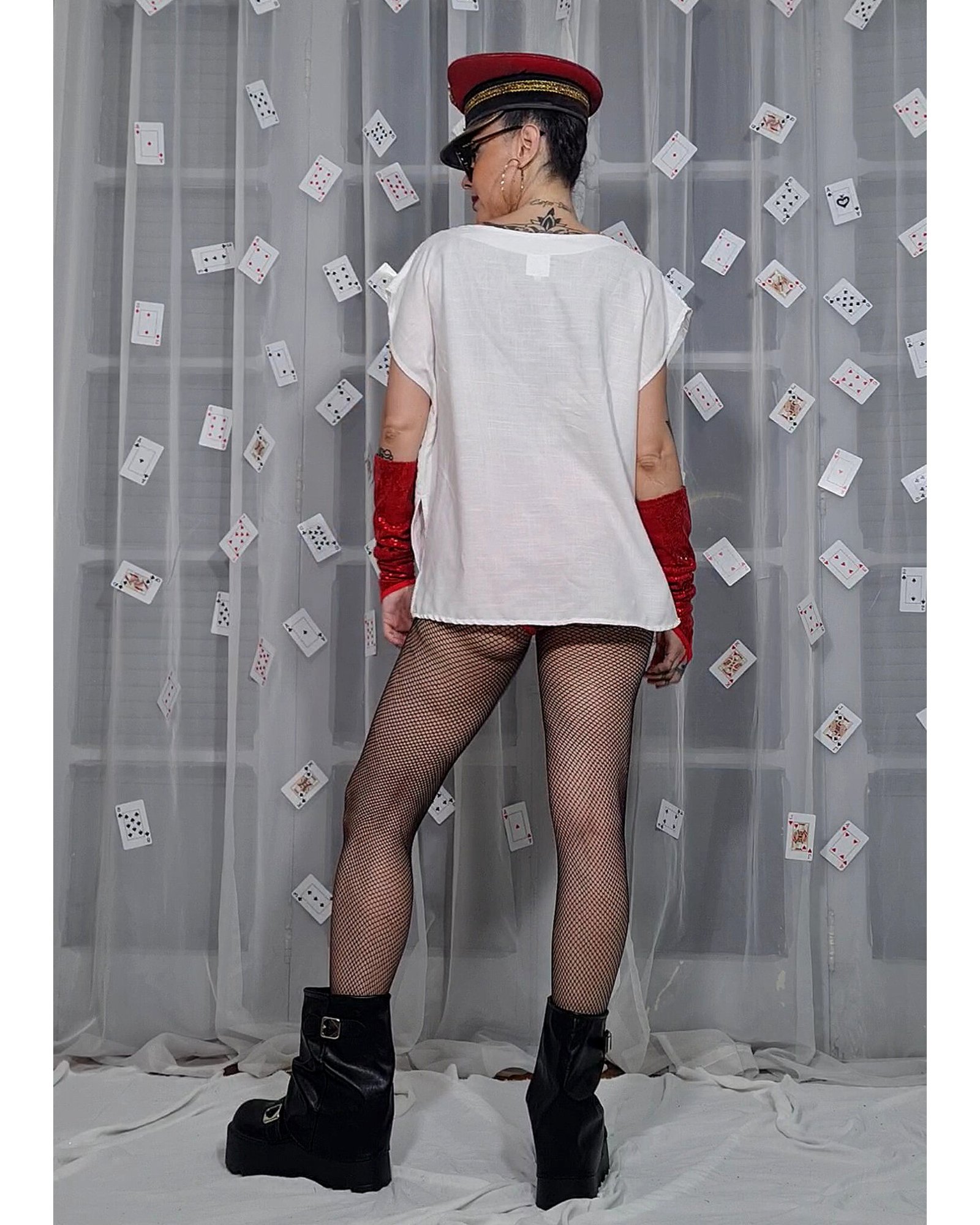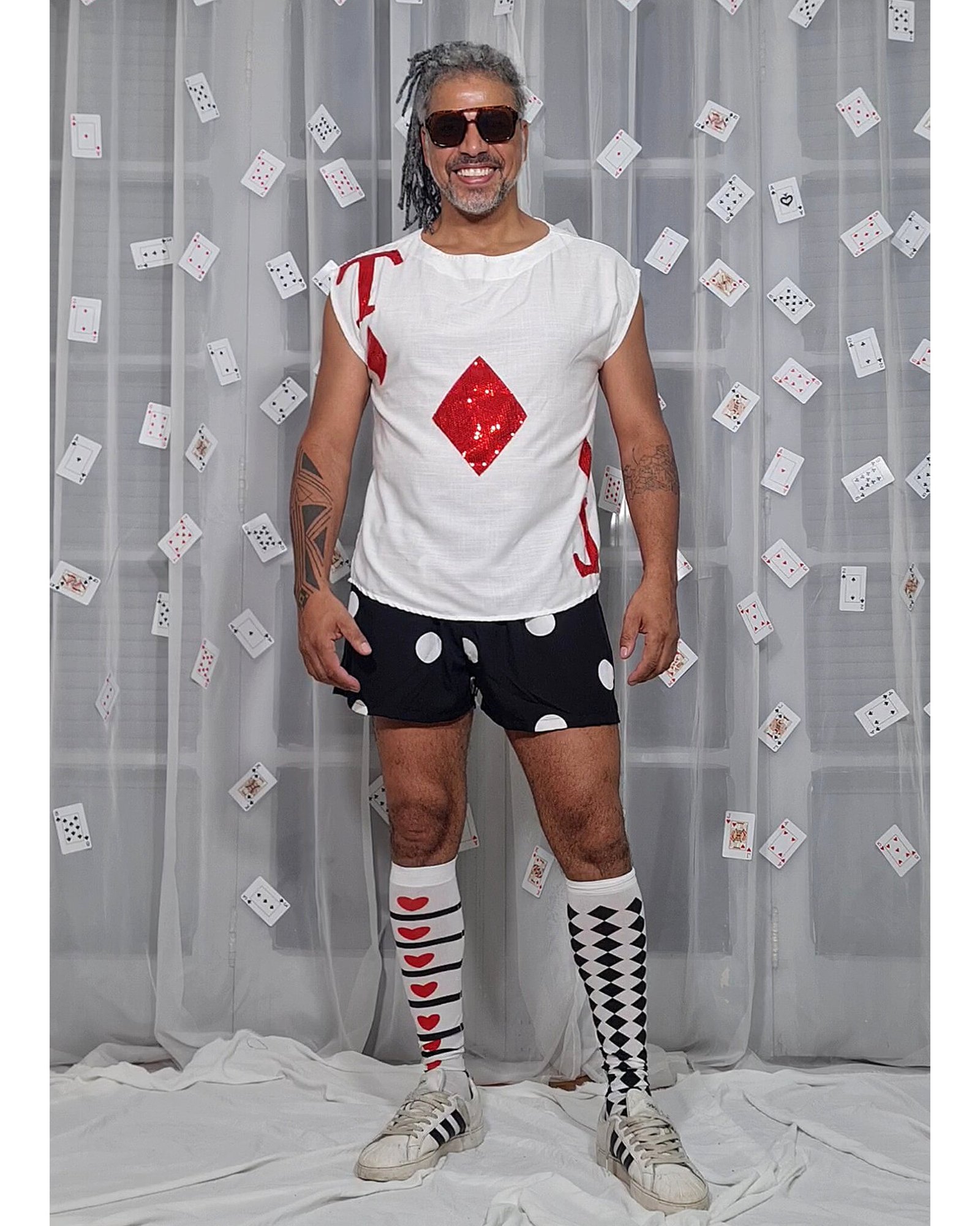 T-zão é um regatão sem gênero com corte retangular que remete a cartas de baralho.