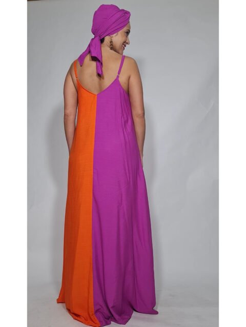 Vestido com a frente da saia com um bico com botão que abotoa na argola do top . O top é ajustável nas costas. As costas da saia possui elástico na cintura. Você poderá usar a saia com qualquer outro top ou biquini, e também poderá usar o top separadamente!