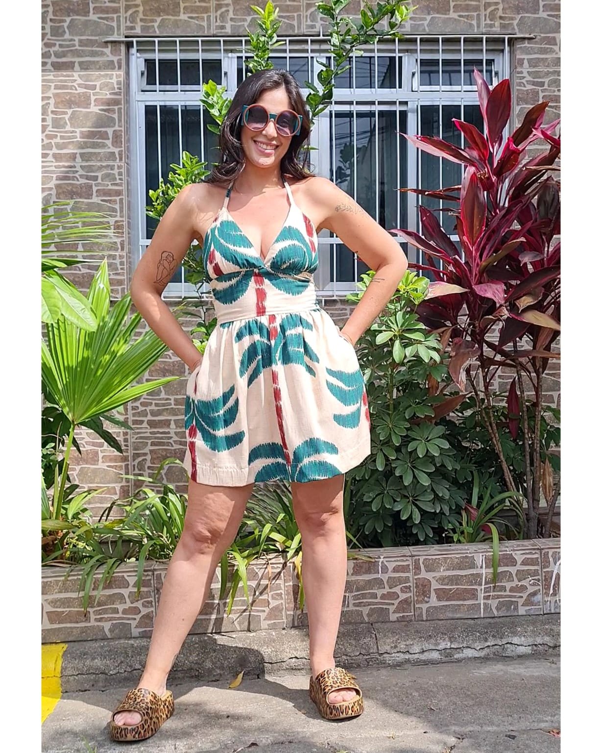 Vestido com top busto ajustável nas alça e nas costas com a saia curta.