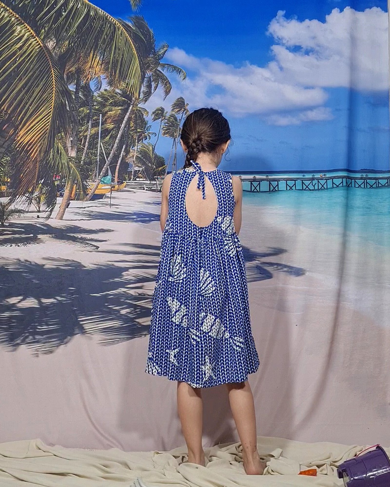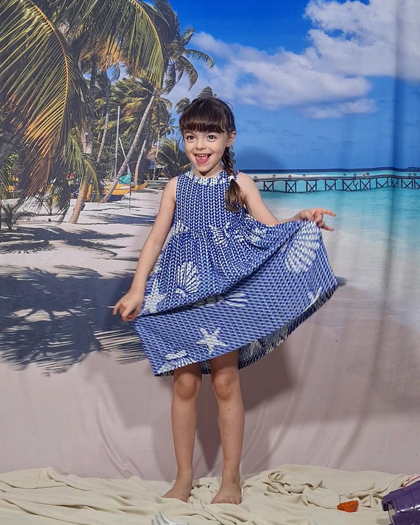 Vestidinho infantil fresquinho com as costas aberta em gota.