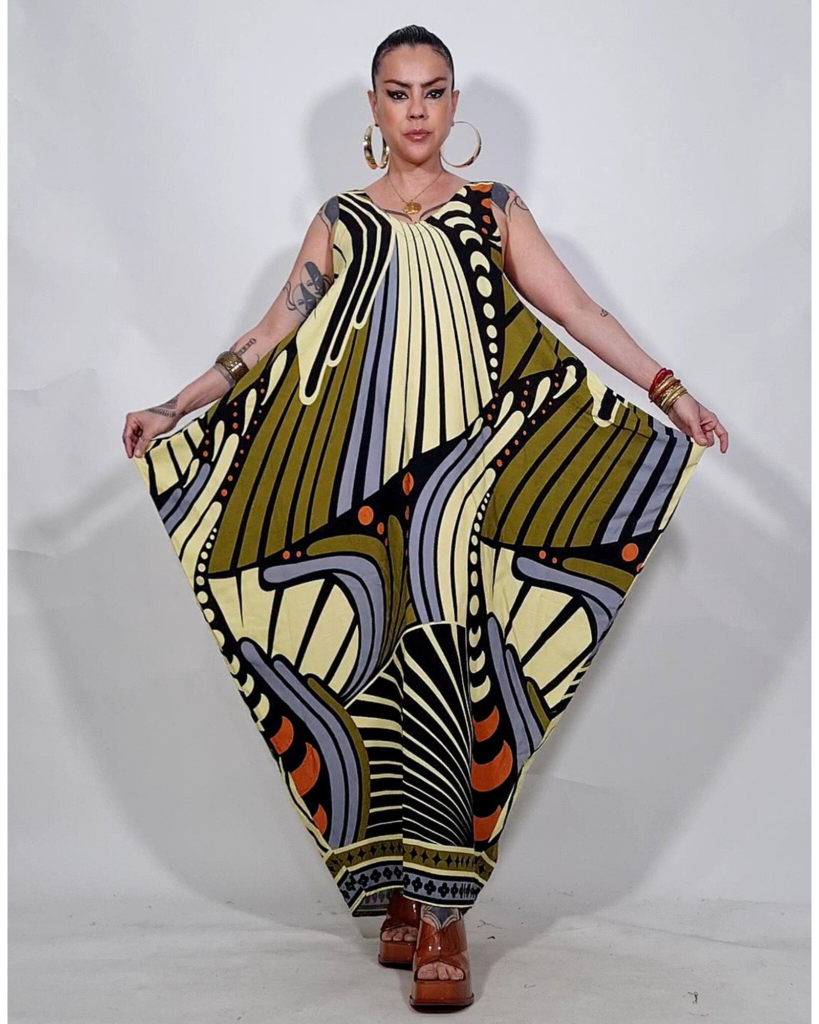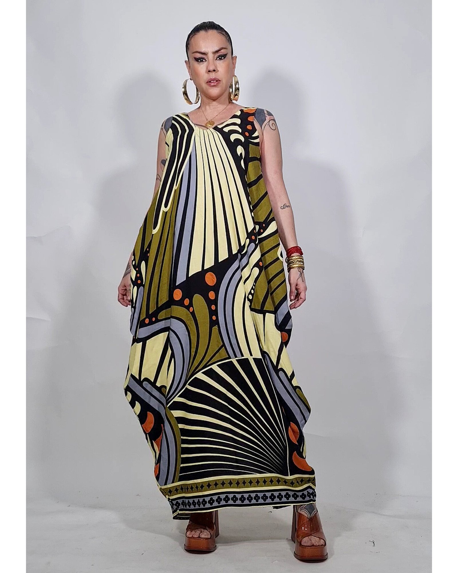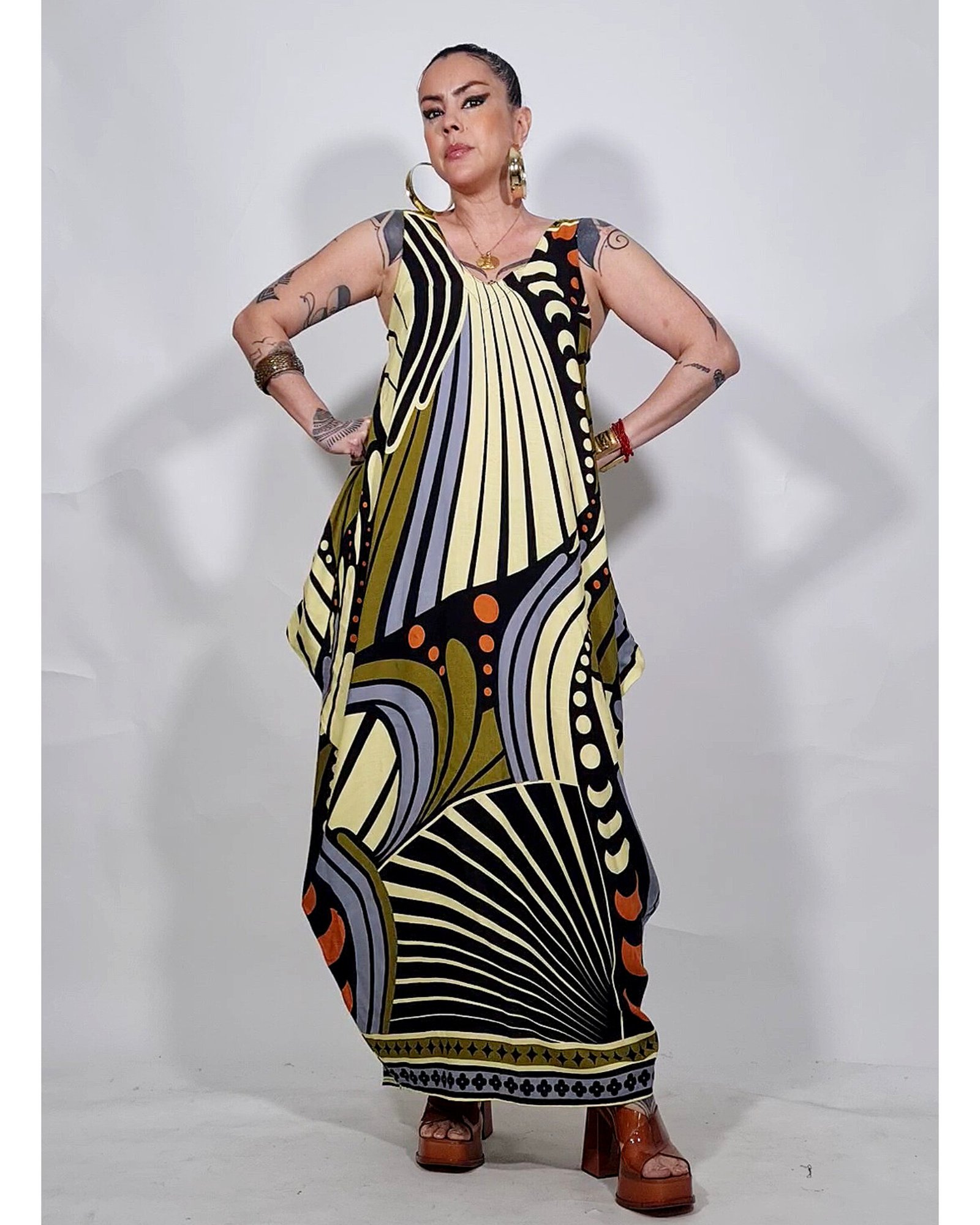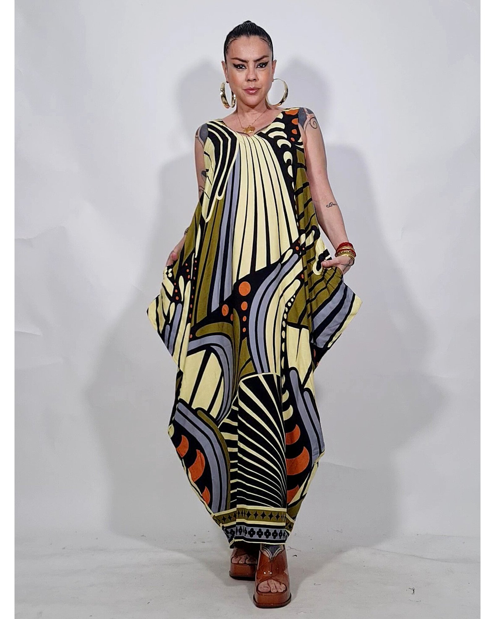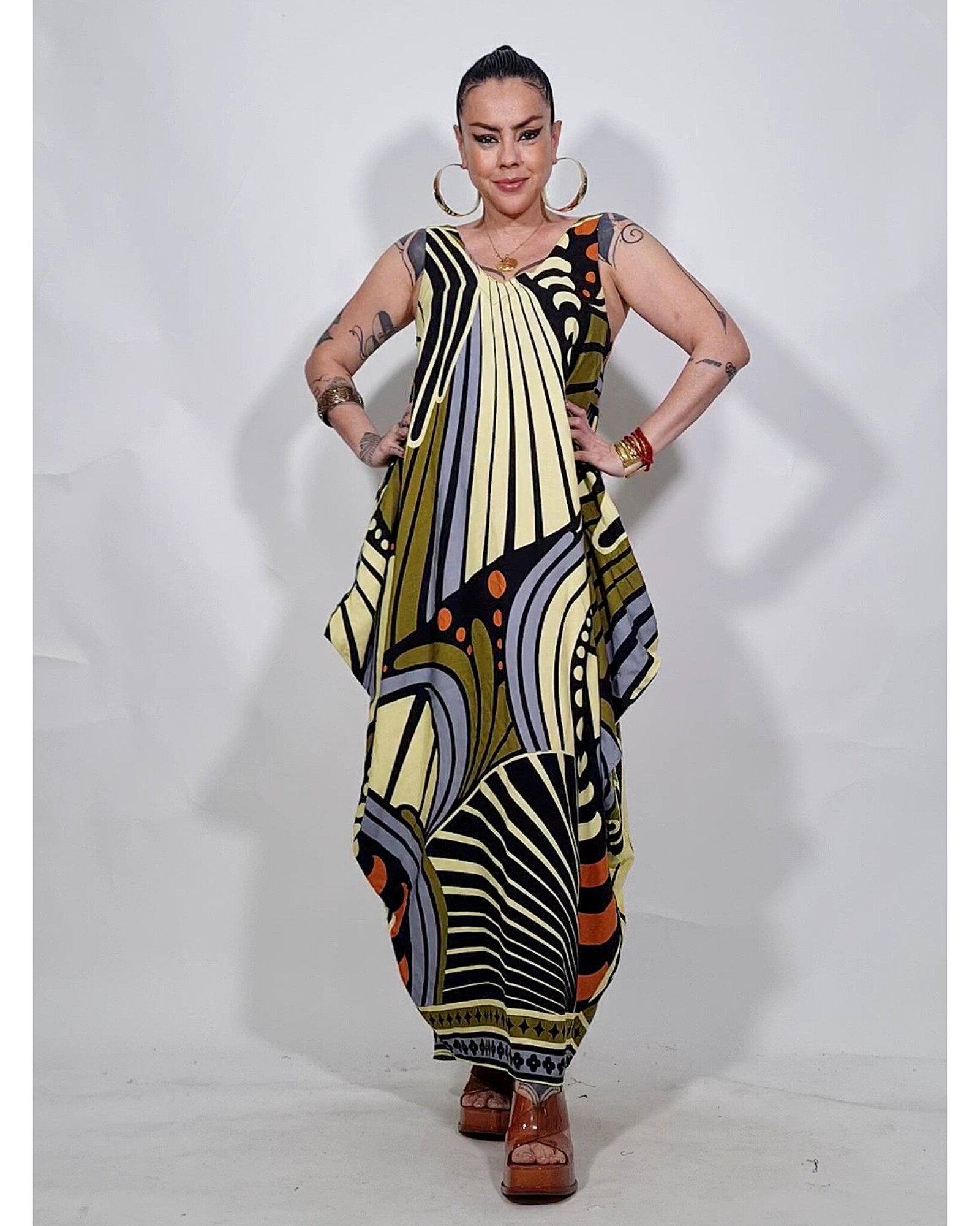 Vestido com as laterais geométricas, super amplo.